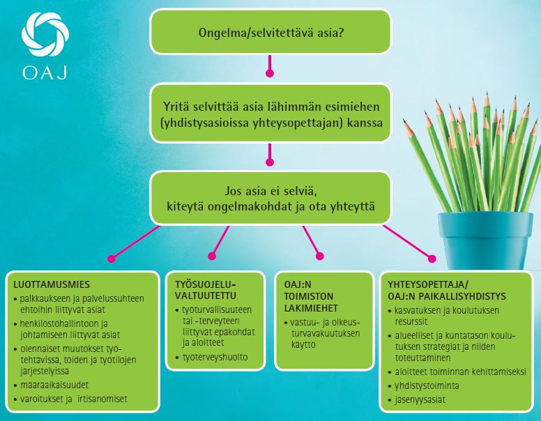 Jos sinulle tulee ongelmia työssäsi ota ensin yhteyttä lähimpään esihenkilöön ja yritä selvittää asia hänen kanssaan. Jos ongelma ei selviä, ota yhteyttä luottamusedustajiin, kun ongelma koskee …